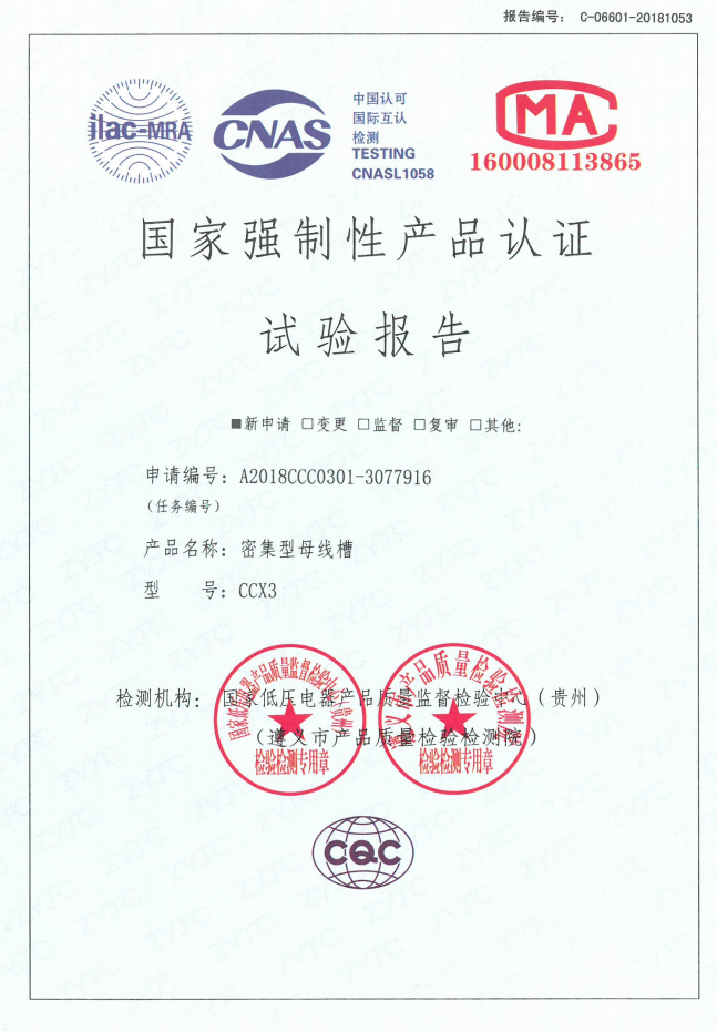 CCX3密集型母線槽國家強制性產(chǎn)品認證試驗報告