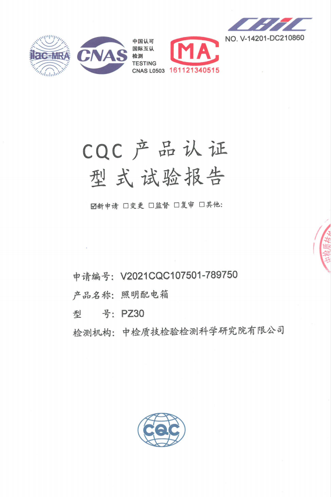 PZ30照明配電箱產(chǎn)品認證型式試驗報告
