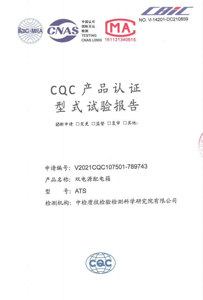ATS雙電源配電箱產(chǎn)品認證型式試驗報告